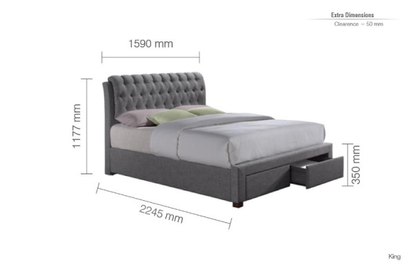 Bed Frames Online | Choose your bed by type | Upholstered fabric bed frames. | Birlea Valentino Grey Fabric 2 Drawer Bed